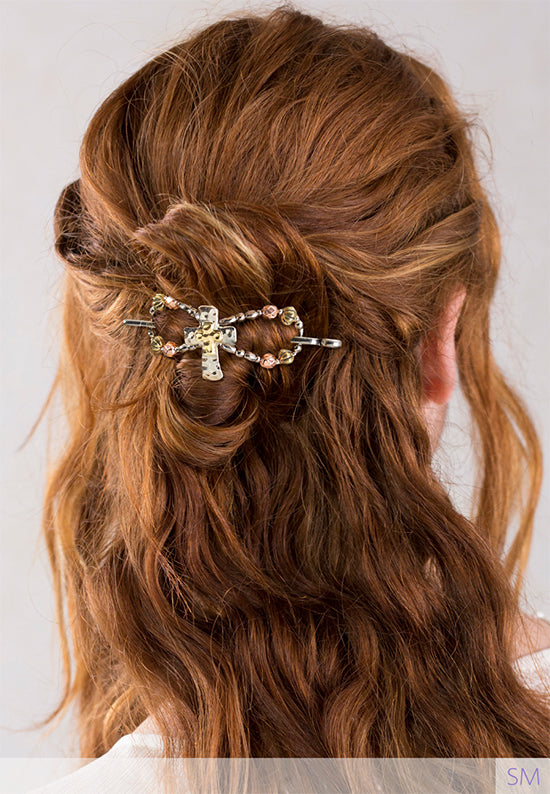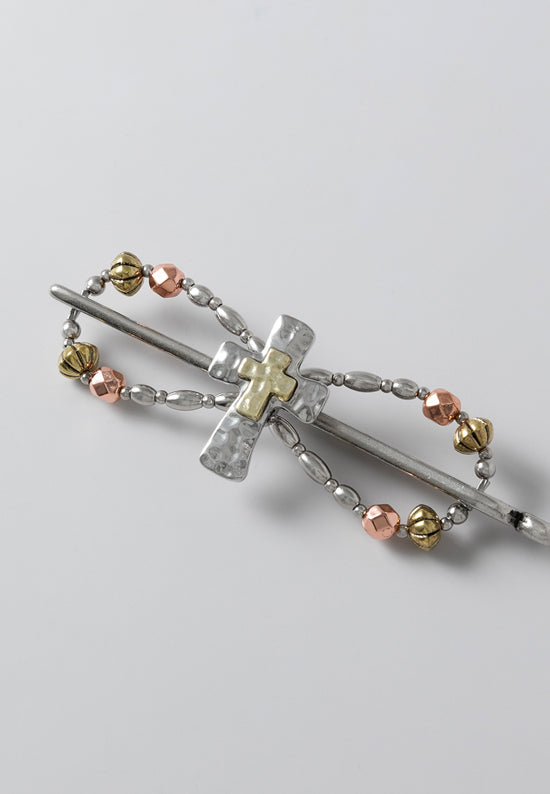 Hammered cross with mixed metal accents. Available for a limited time or while supplies last.