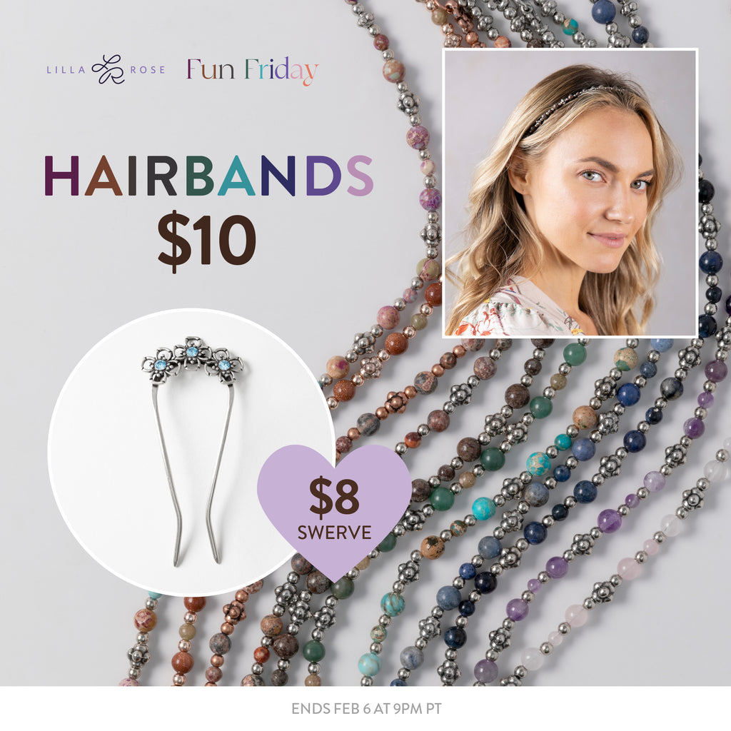 Gorgeous Tranquility Swerve at the 🎉Fun Friday price of only $8 - Save 65% off! Tranquil flowers gleam in crystal turquoise atop this Swerve style U-Pin with brushed antiqued silvertone. No substitutions, replacements, exchanges, refunds or backorders; while supplies last. All sales final. Hurry, this amazing deal ends tonight, February 6 at 9pm PT.