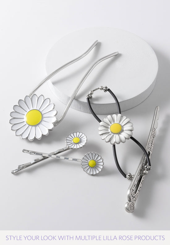 Beautiful white daisy blooms with a bright yellow center. Shown as pairs but sold individually.