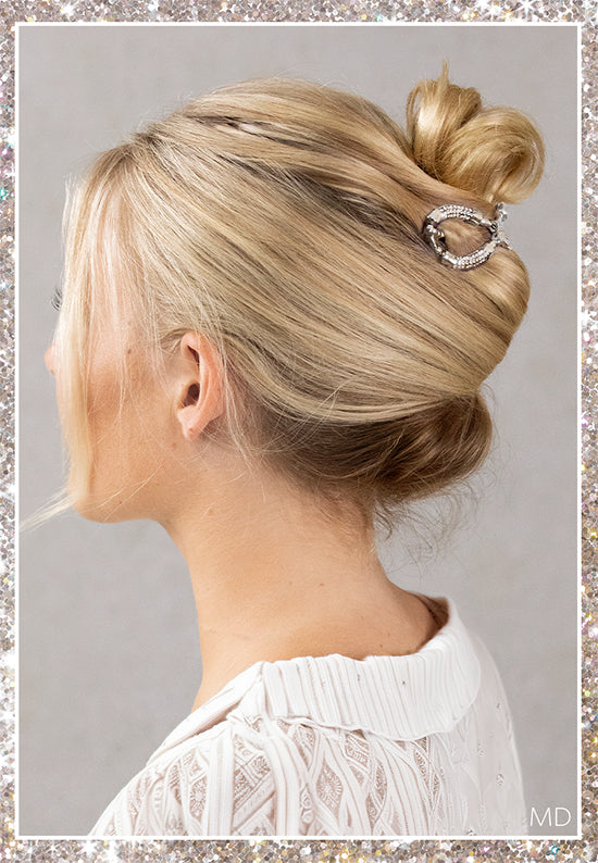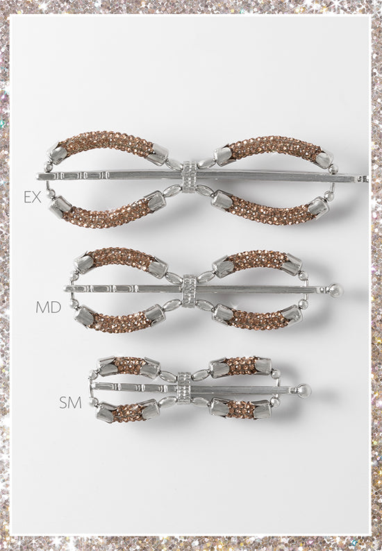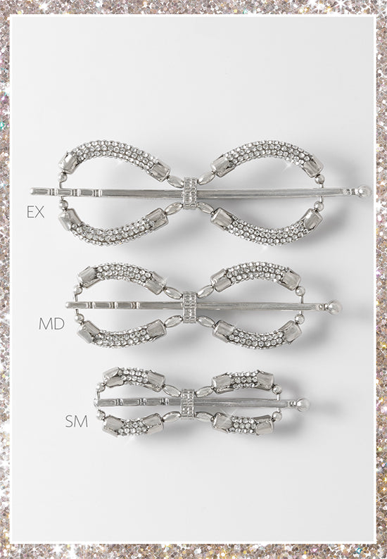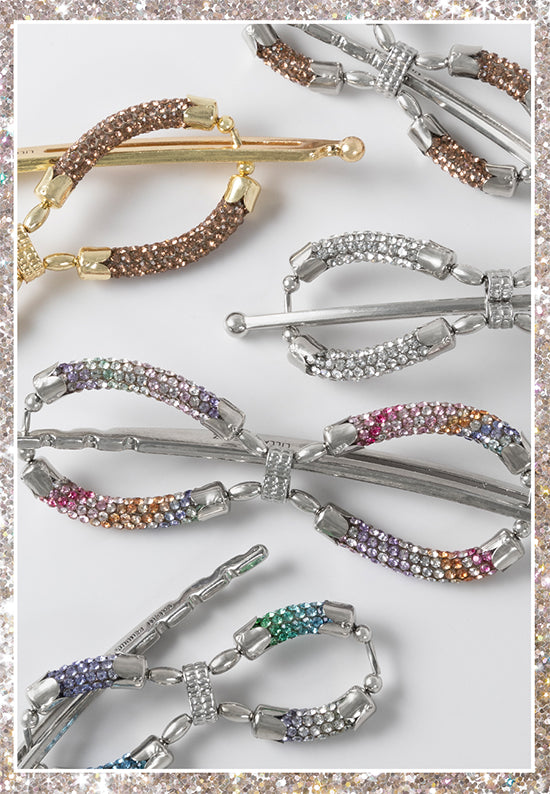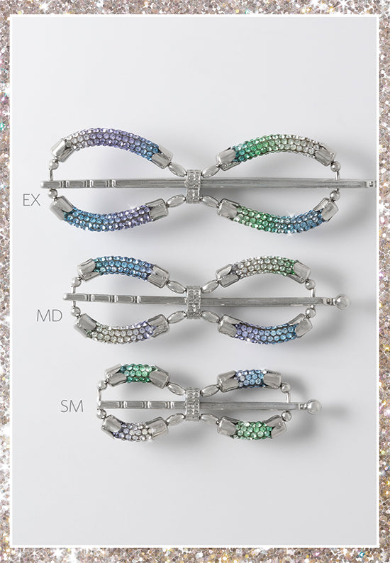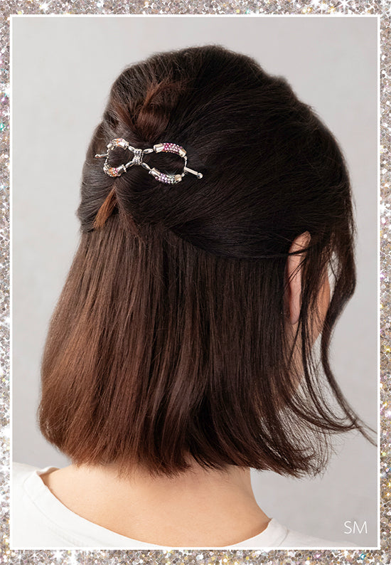 Unique curved pin design provides up to three different sizes by creating a tighter fit when flipped, which allows for multiple hairstyles with just one Flexi Flip! This elegant design is available in four different rhinestone colors.