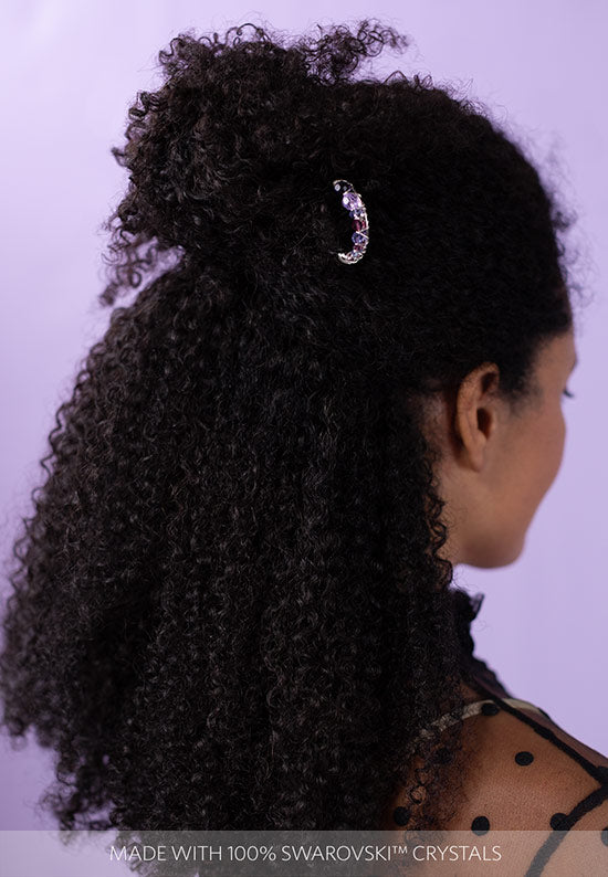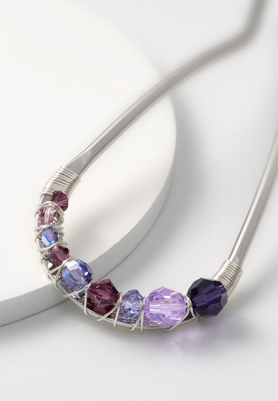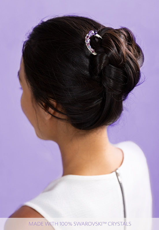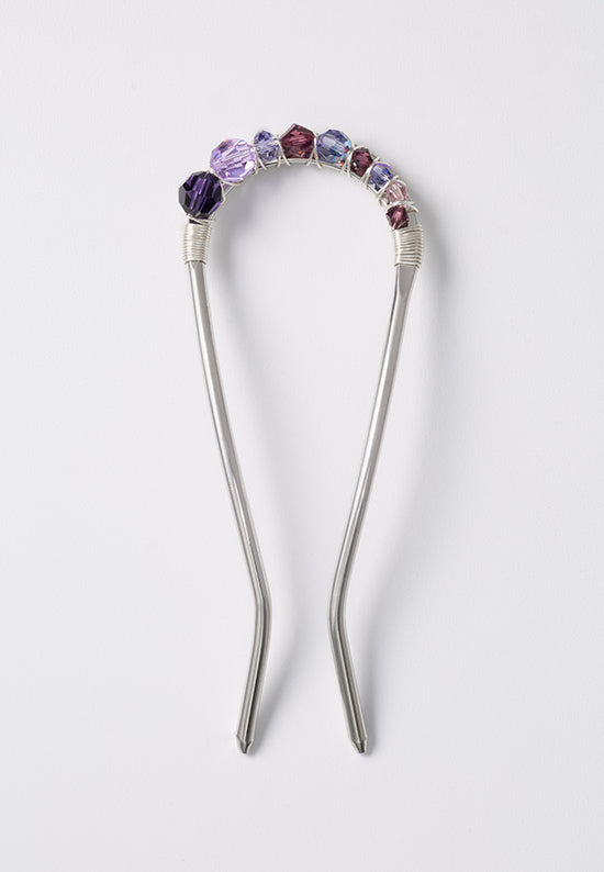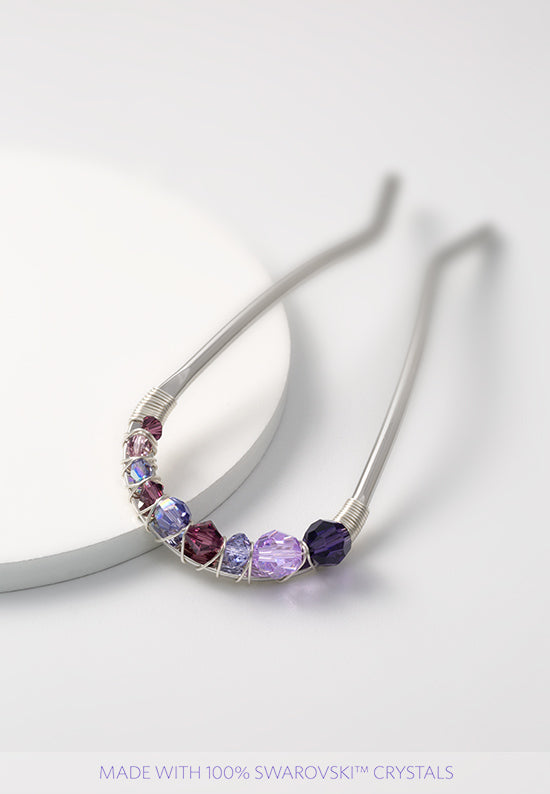 Large-sized Swerve U-Pin with 100% Swarovski beads in purple hues.