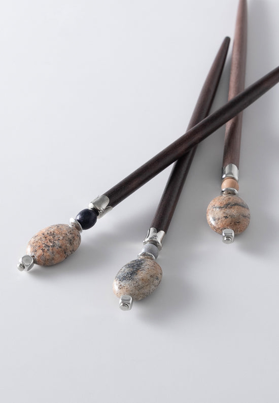 Oval feldspar natural stone with grainy accents. Choice of tan, black or gray stone accent bead - black and gray stone accents are only available in the long length. Available for a Limited Time Only or while supplies last.