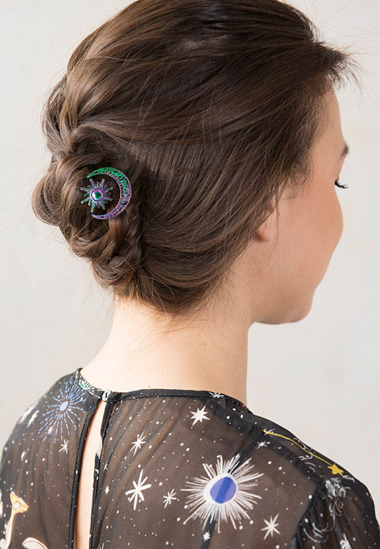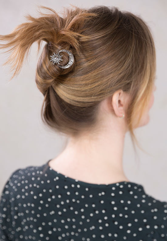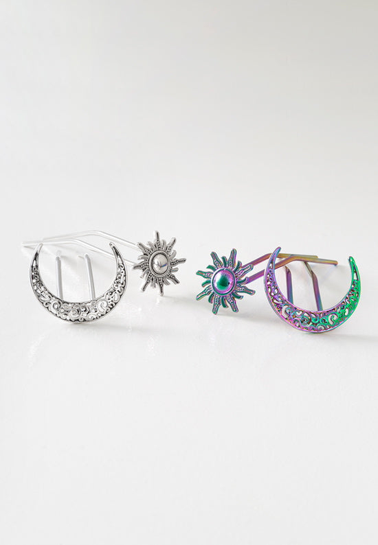 Pair up these U-Pins for a cosmic look. Sun and moon. Sold as pairs.