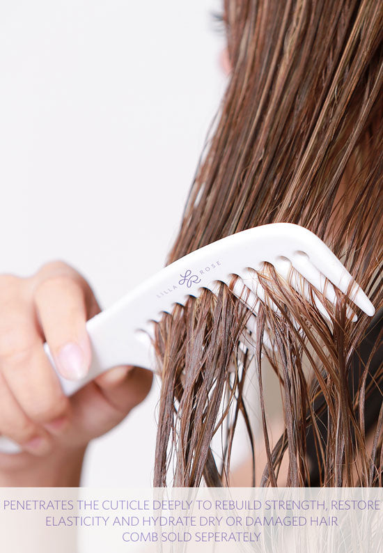 An intense treatment enriched with Shea Butter and Moroccan Argan Oil. Penetrates the cuticle deeply to rebuild strength, restore elasticity and hydrate dry or damaged hair. Safe for colored, straightened and chemically-treated hair. Comb through with our large wide-tooth comb with over-sized hook for a perfect in shower duo. Customer exchange/refund policy up to 30 days.