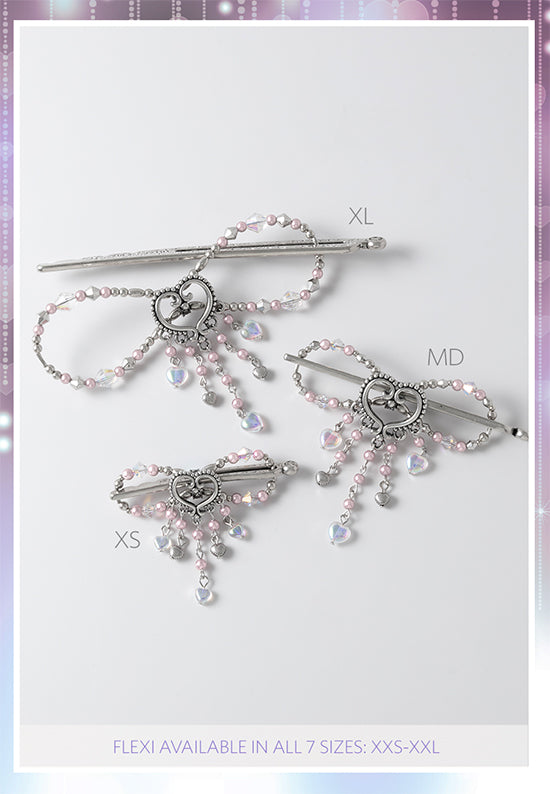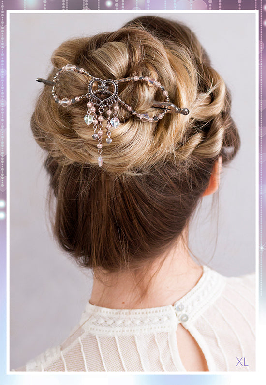 Lovely open heart with dangle drops in soft pink pearls and crystal aurora borealis. Available for a limited time or while supplies last.